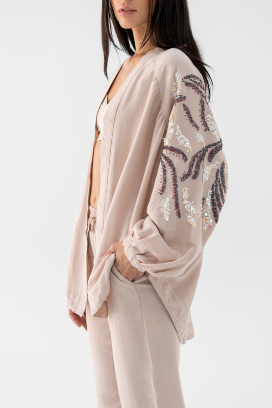 Vestido De Gamusa Verde Con Perlas En La Espalda