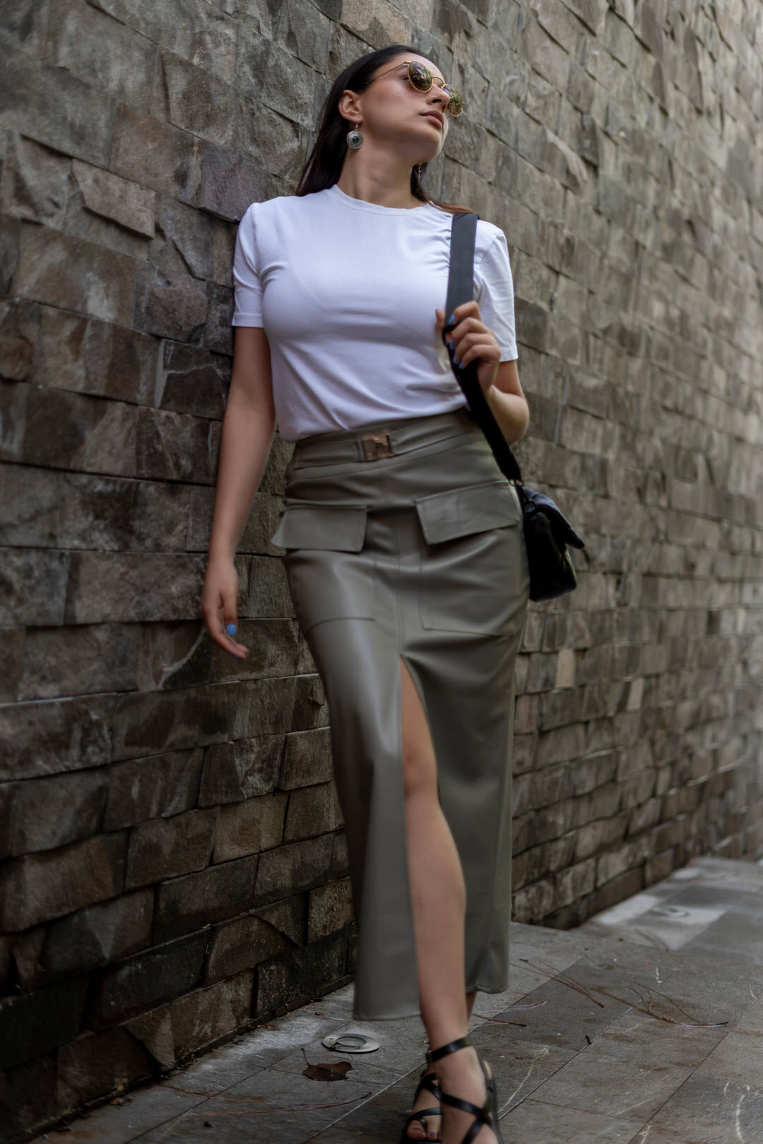 ¡Añade estilo y elegancia a tu guardarropa con nuestra falda de cuero verde! Perfecta para cualquier ocasión, su diseño exclusivo te hará lucir siempre elegante. ¡No te pierdas la oportunidad de tener esta prenda única en tu colección!